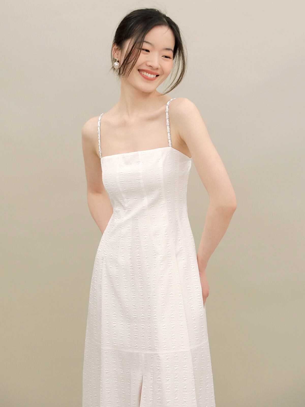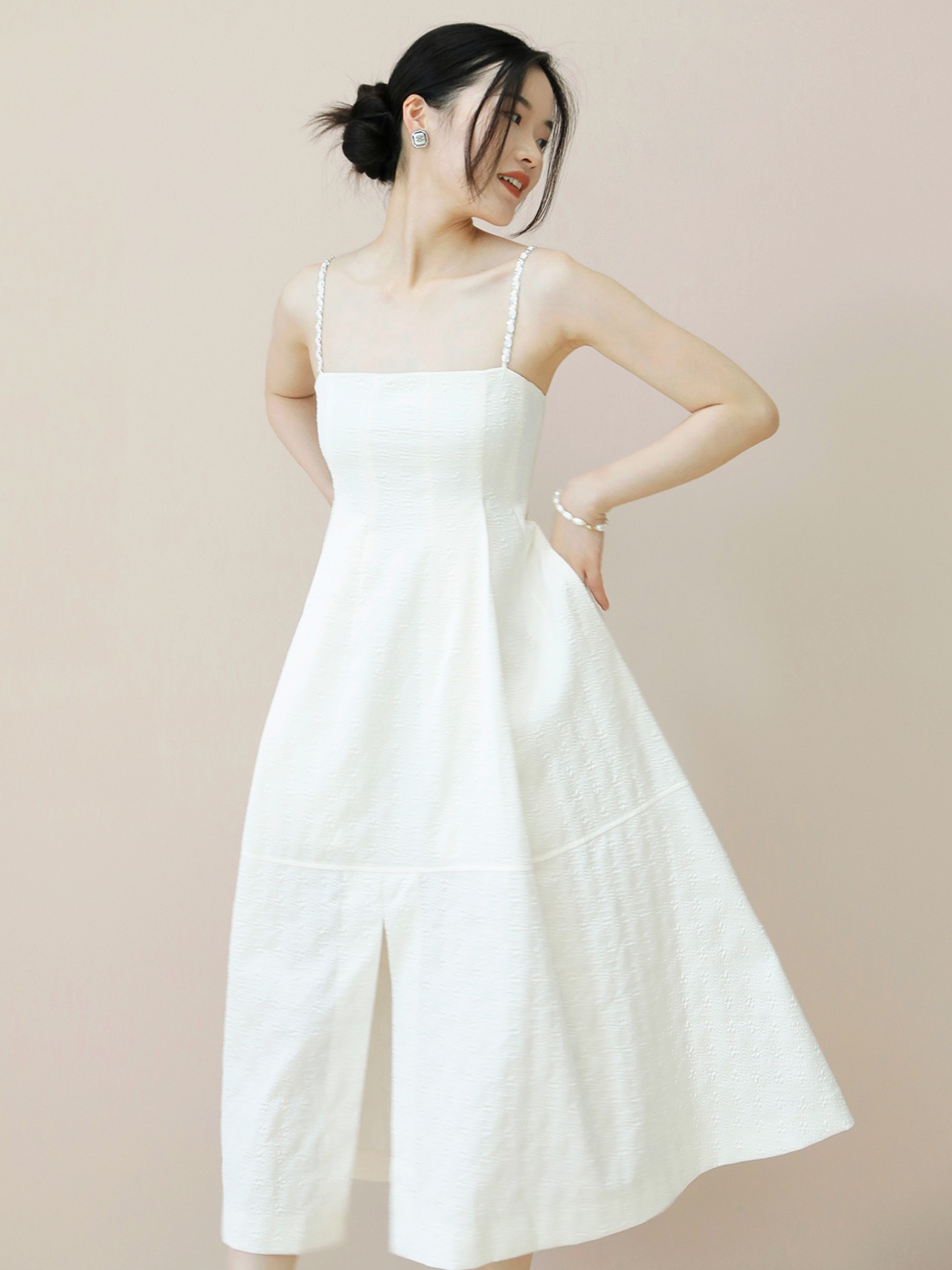 パーティードレス ホワイト フランス風 背中見せ キャミソール フロントスリット合コン/デート