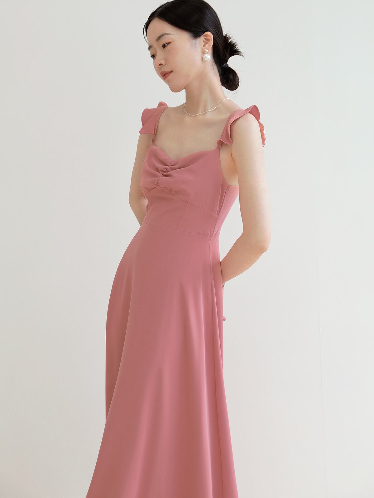 パーティードレス オフホワイト/ホワイト/ピンク フリル袖 細見えシルエット 2次会/合コン/デート