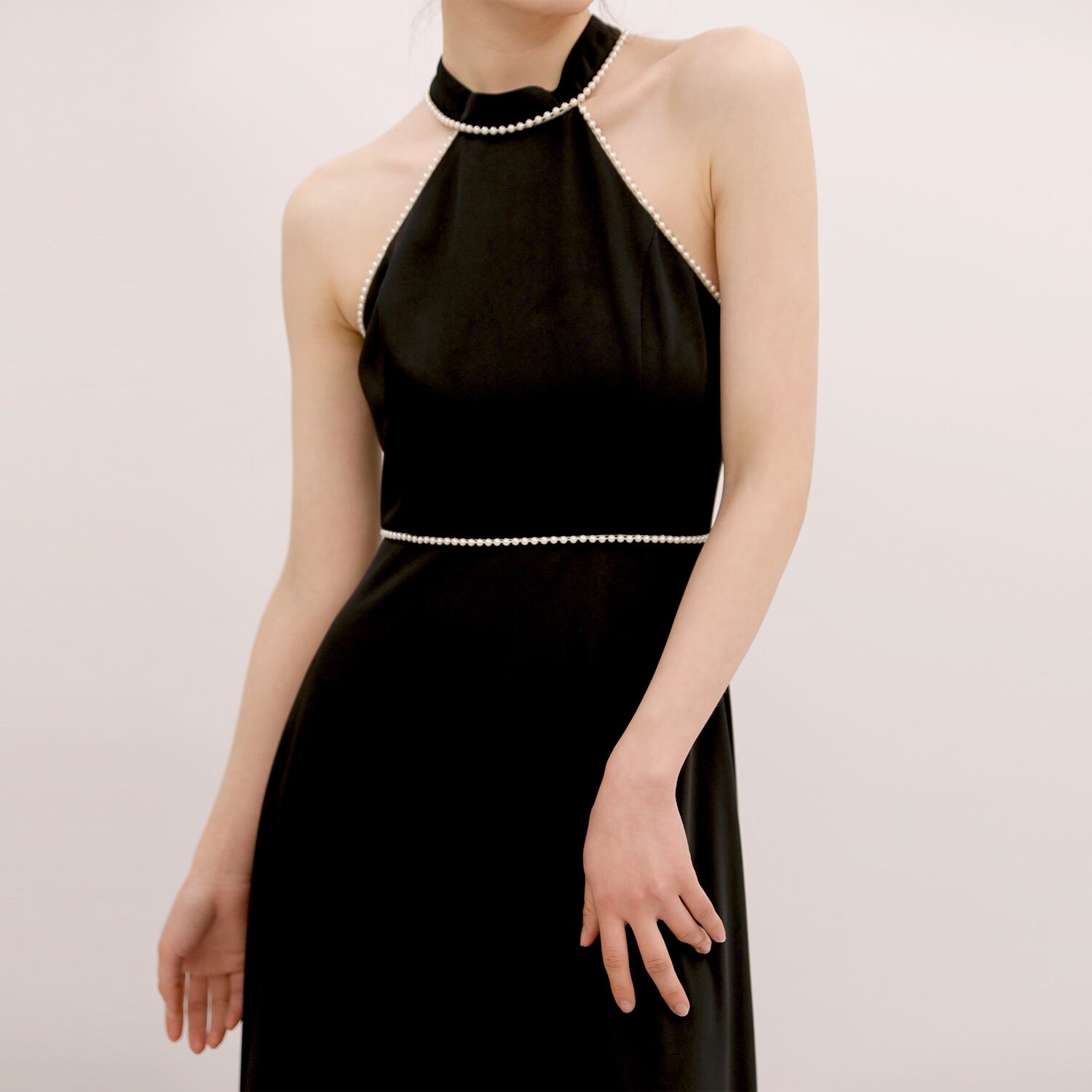 パーティードレス ブラック ホルターネック Aライン ノースリーブ 優雅なシルエット ピアノ演奏会/音楽会/発表会など
