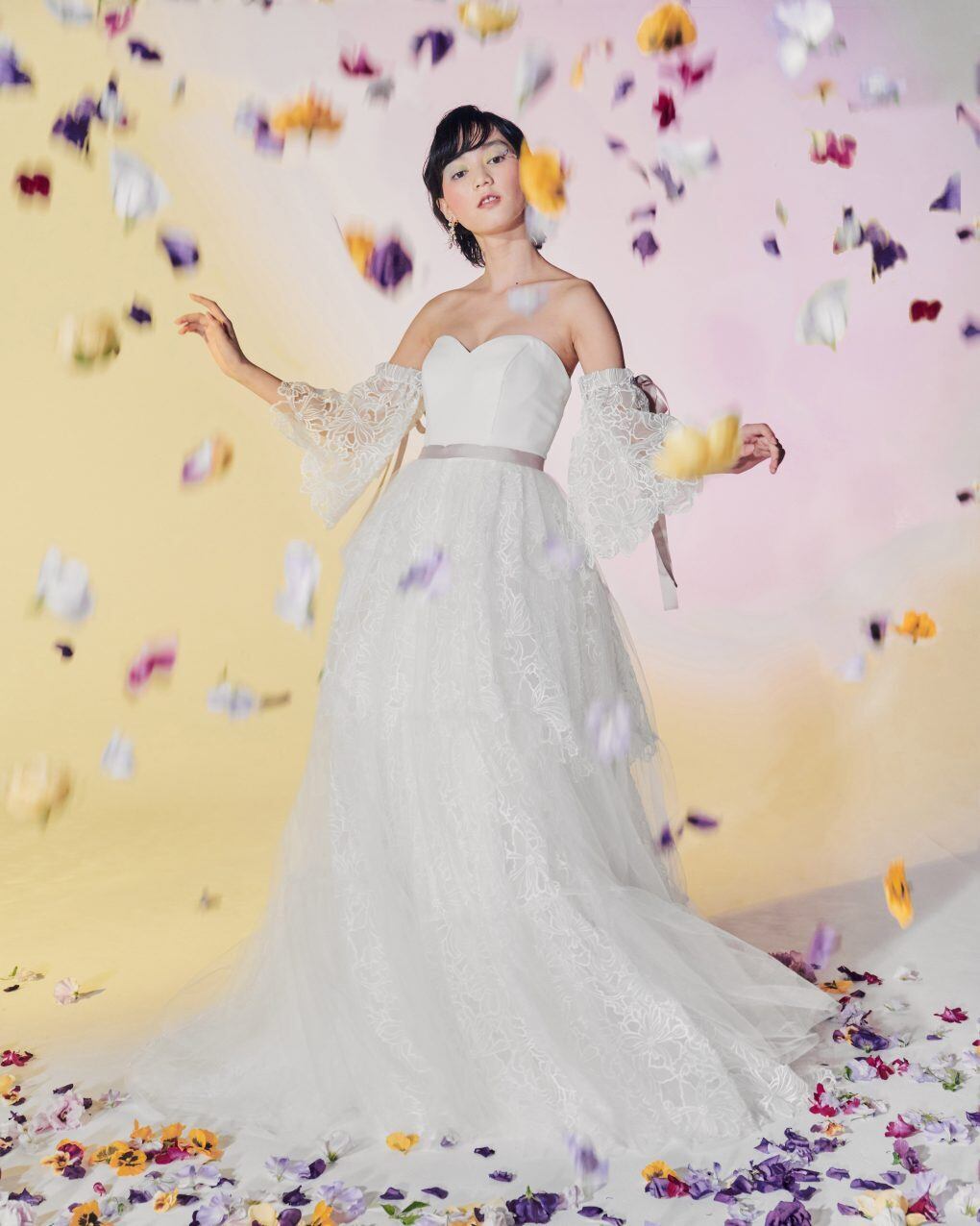 ウェディングドレス ホワイト 取り外しオフショルダー 繊細レース 結婚式/披露宴