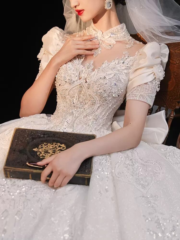ウェディングドレス ホワイト レース プリンセスライン トレーン 豪華! 花嫁/ウェディングドレス