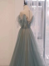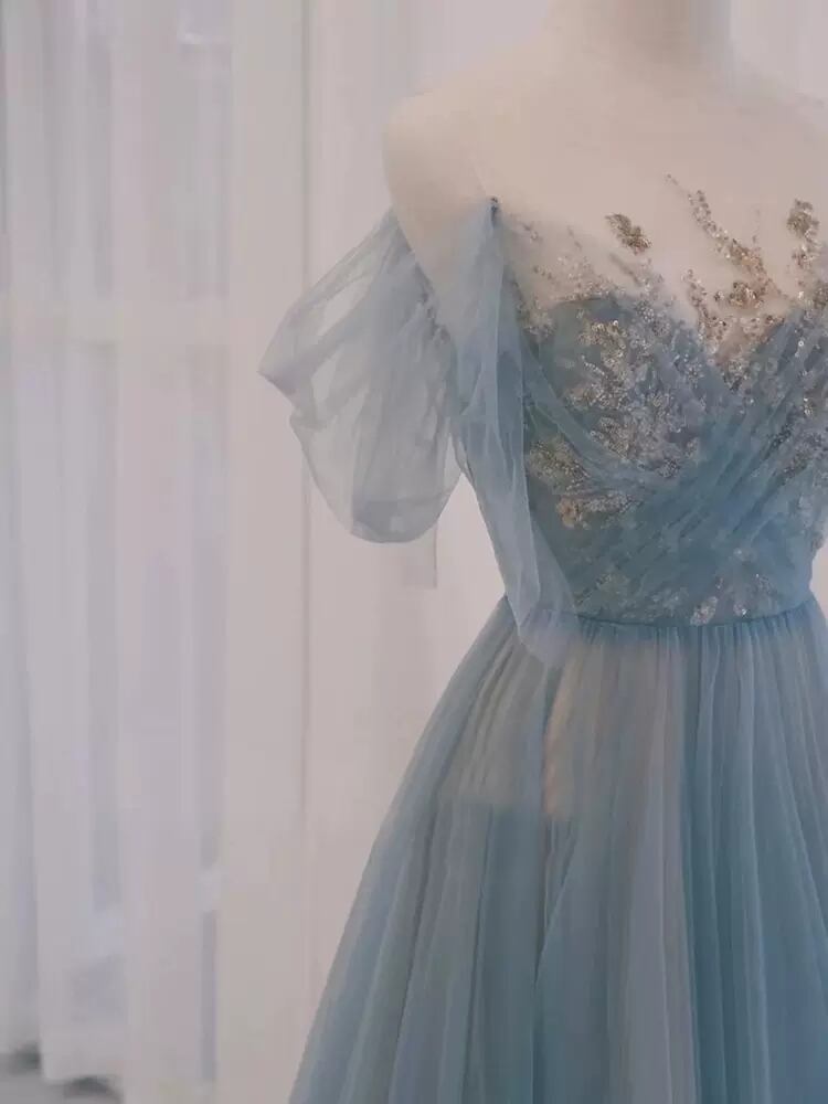 パーティードレス 青 プリンセスライン キラキラスパンコール ベアトップ トレーン エレガント お呼ばれ/二次会/パーティー