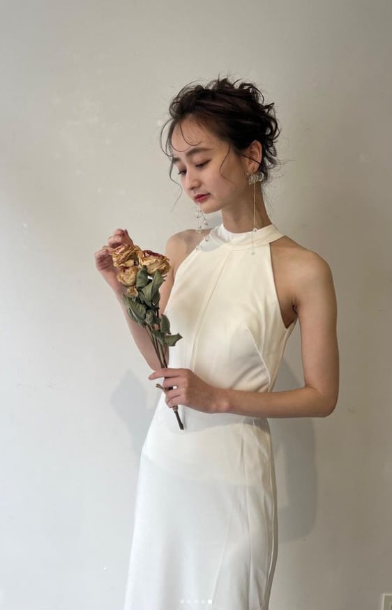 ウェディングドレス ホワイト 上品!スレンダーライン ホルターネック 披露宴/ お呼ばれ/二次会