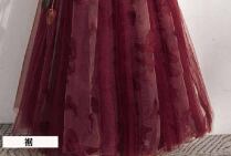 ウェディングドレス ワインレッド 高品質!花柄のモチーフ刺繍が美しく キャミソール 結婚式/2次会