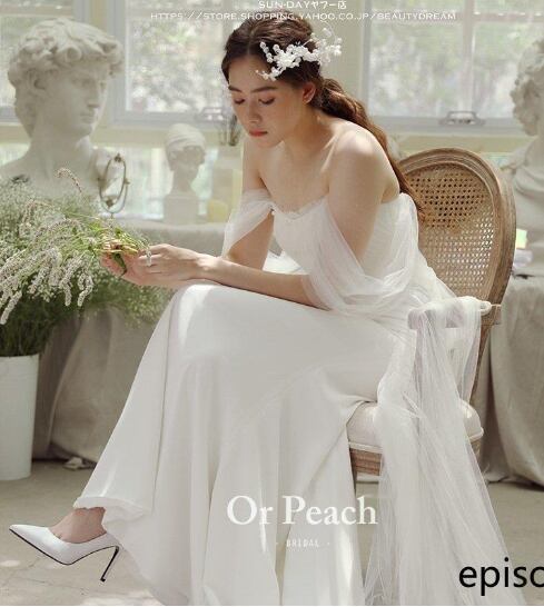 ウェディングドレス ホワイト エレガント ドロップショルダー 憧れのドレス 結婚式/披露宴