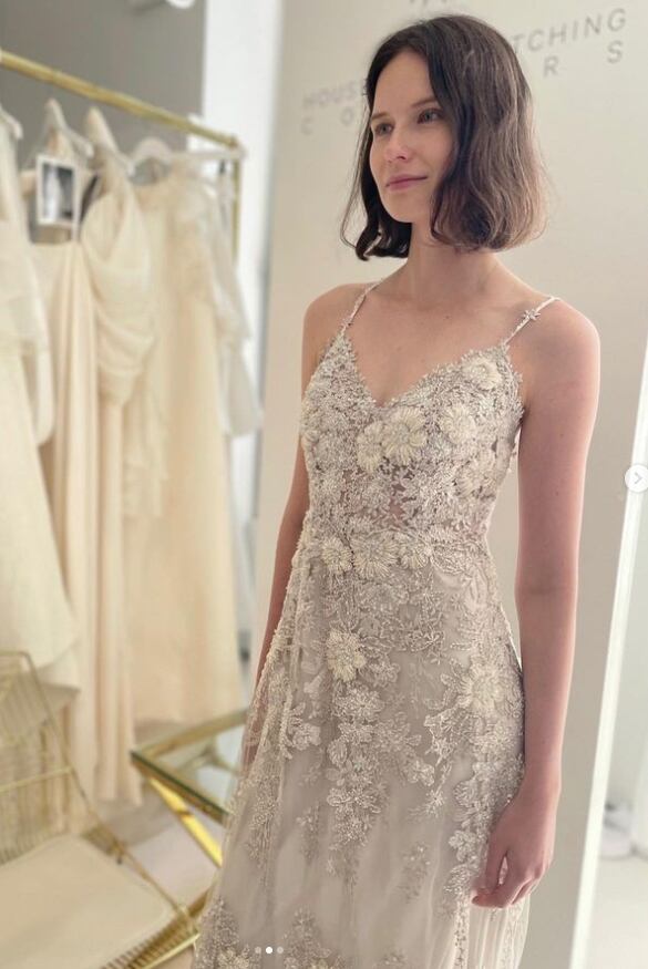 ウェディングドレス 薄シャンパンの色 繊細レース セクシー キャミソール 背中見せ 結婚式/披露宴/お呼ばれ/二次会