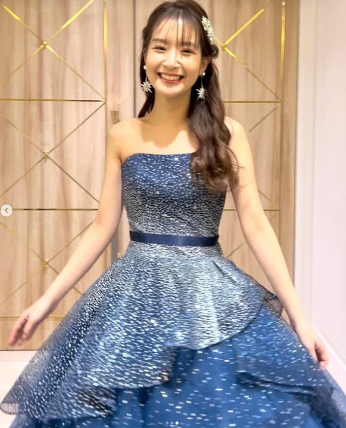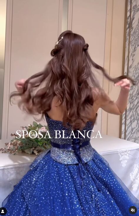 ウェディングドレス ブルー 憧れのドレス キラキラグリッターチュール ベアトップ パーティー/ ピアノ演奏会/音楽会