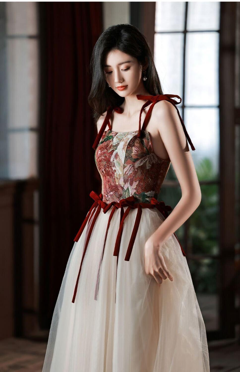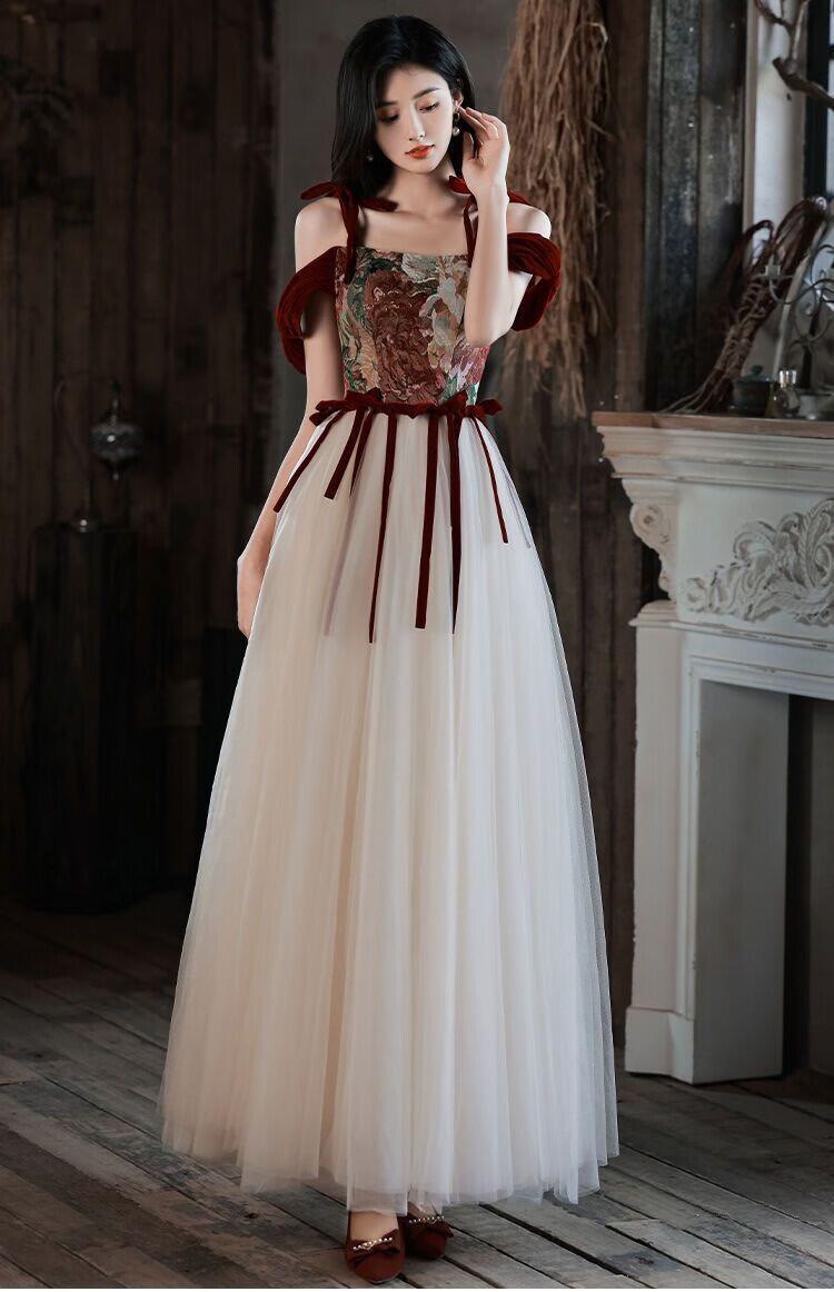 ウェディングドレス ワインレッド アンティークなドレス キャミソール 高みせ ロング 披露宴/2次会