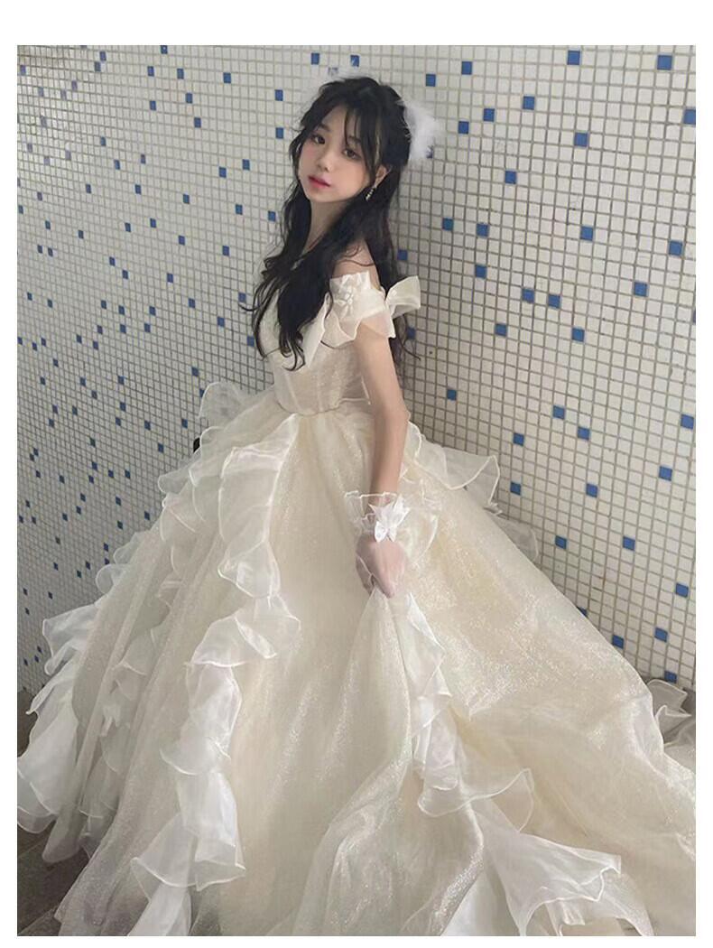 ウェディングドレス オフホワイト 上品! プリンセスライン オフショルダー 憧れのドレス 結婚式/披露宴/ お呼ばれ